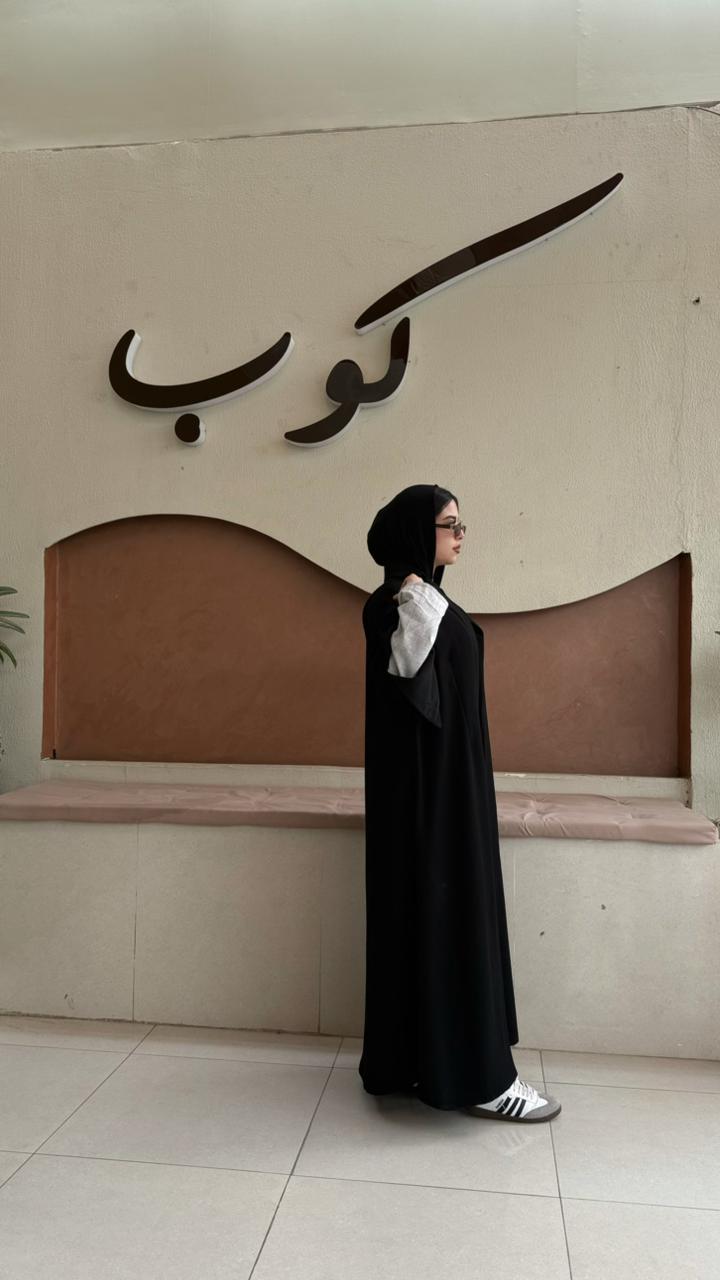 عباية بتصميم انيق، مصنوعة من قماش كريب خليجي يتميز بالنعومة والانسيابية والثبات في اللبس عشان يناسب كل مناسباتك الرمضانية.