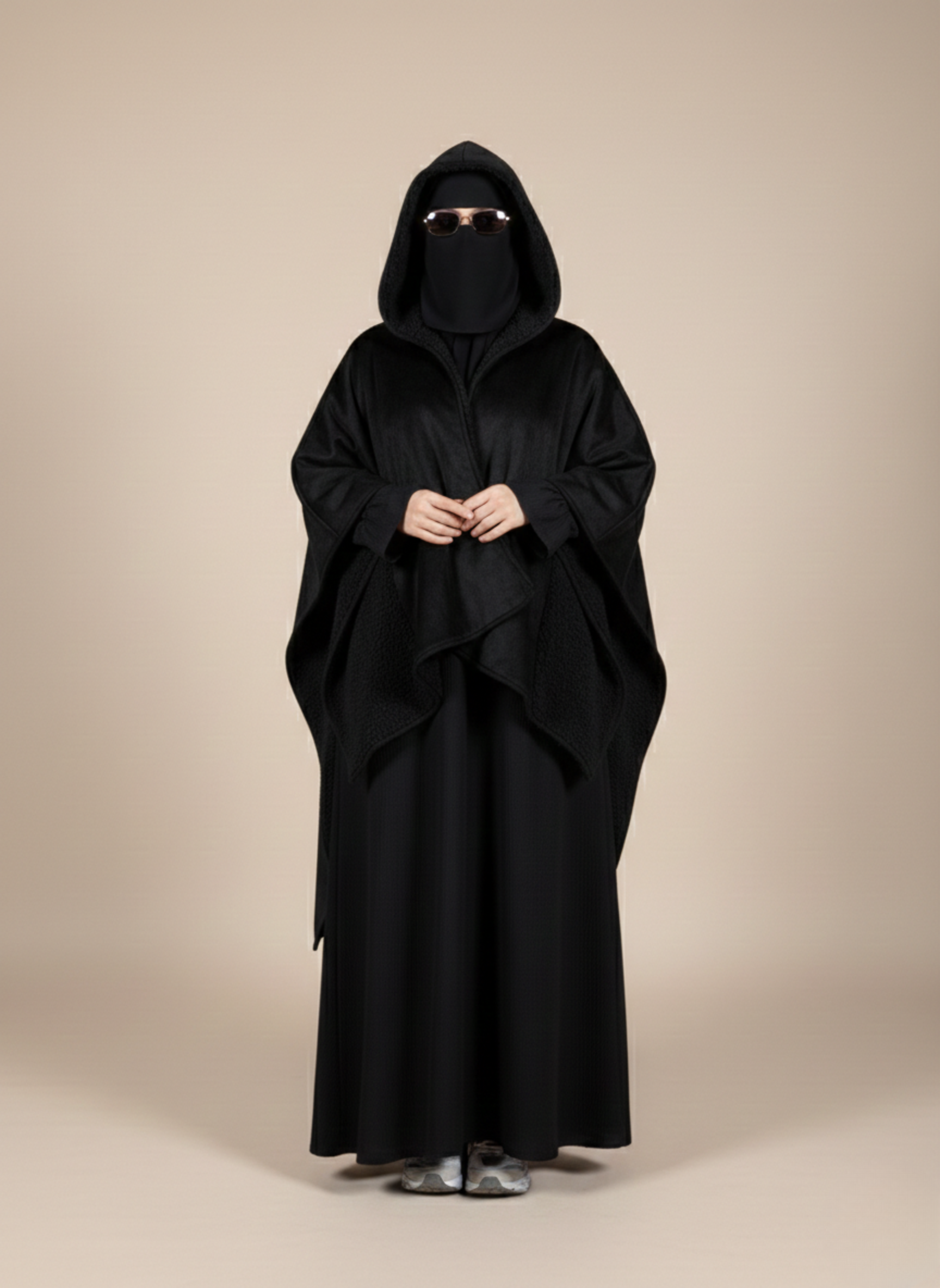 القصّة واسعة وتُلبس كقطعة خارجية فوق الملابس، مناسبة للأجواء الباردة والاستخدام اليومي، من غير تعقيد أو تفاصيل زيادة.